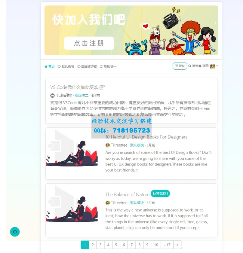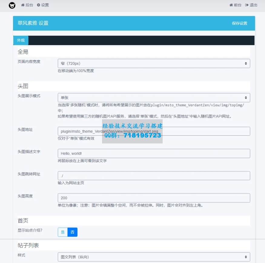 帖子列表风格:包括紧凑、经典、图文(图在左侧)布局及图文(图在顶部)布局